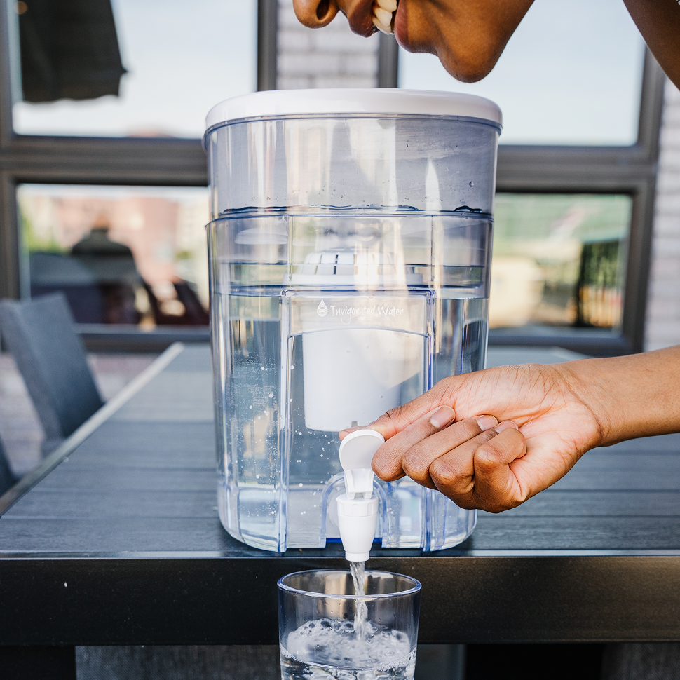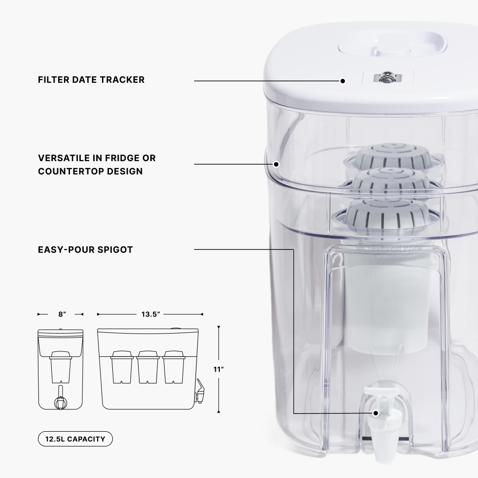 A space-saving, anti-slip countertop design that filters 4x faster than single filter dispensers.