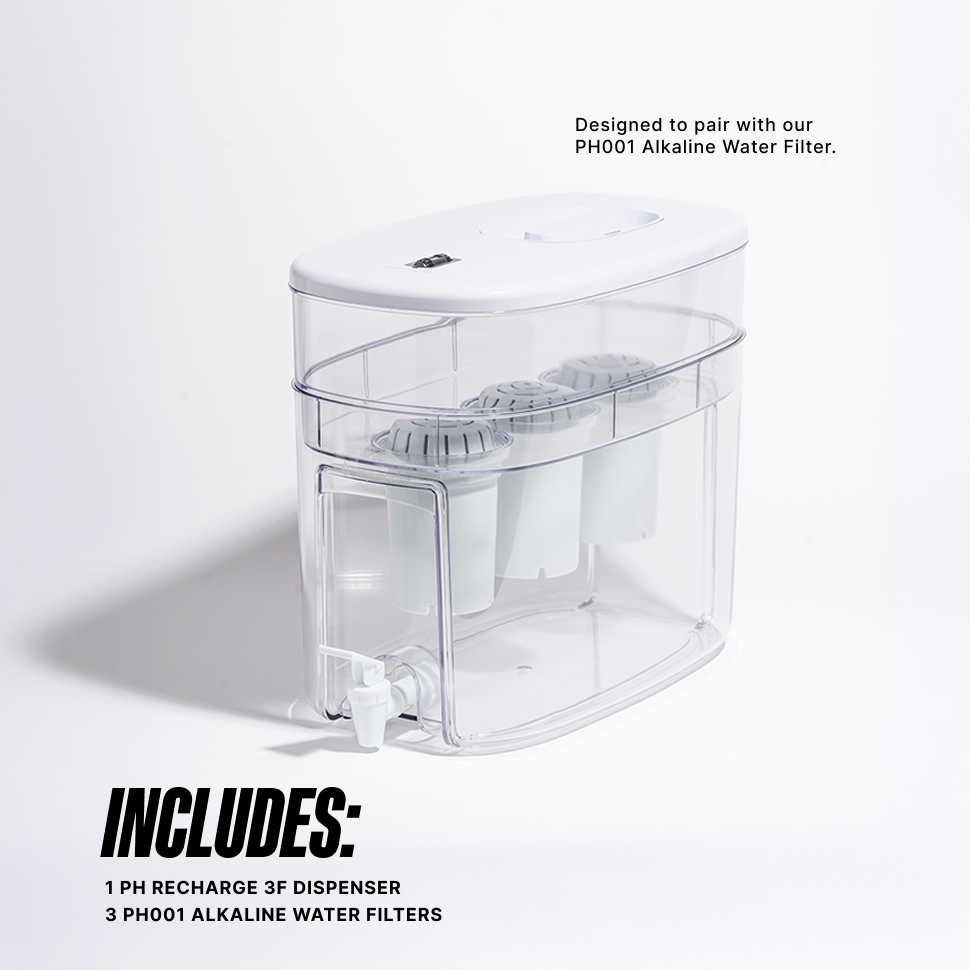 Transform your daily hydration routine. The pH Recharge 3-Filter Alkaline Dispenser energizes your body and empowers your active lifestyle. Simply fill, filter and dispense alkaline water that helps you feel more balanced, hydrated, and ready to tackle whatever your day demands. Whether you're fueling morning workouts, staying sharp during busy workdays, or ensuring your family has access to premium hydration, this sleek countertop companion seamlessly integrates into your kitchen while supporting your performance goals.